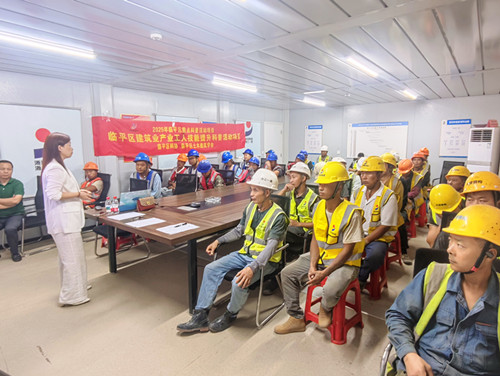 讲座邀请临平区中医院公共卫生科曹熊燕副主任护师作为主讲老师。活动中,曹老师为工友们介绍了健康的标准、工地上主要传染病介绍及防护措施、慢性病对身体的危害及日常预防及建议、心理情绪如何管理等。每一个知识点都贴近大家的工作生活,每一条建议都能直接用到日常防护中,让大家收获了满满的健康“干货”。